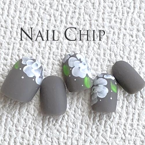 即納 メール便送料無料 ジェルネイルチップ マット グレー ホワイトフラワー 手書きデザイン 10枚入り Y スタジオネイル 通販 Yahoo ショッピング